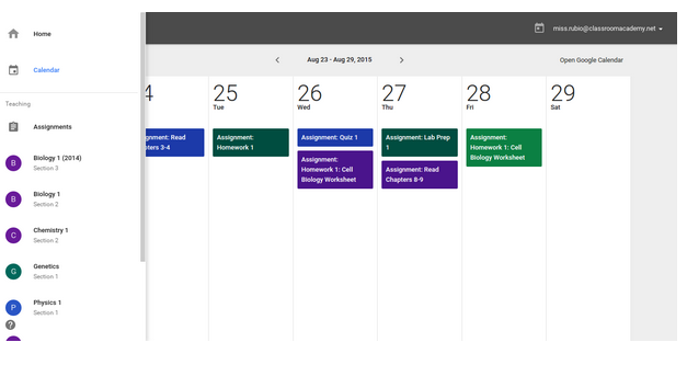 Os professores poderão visualizar as agendas tanto no Google Sala de Aula como no Google Agenda, onde eles poderão adicionar eventos de sala como viagens, palestras, convidados especiais, aulas temáticas, etc.