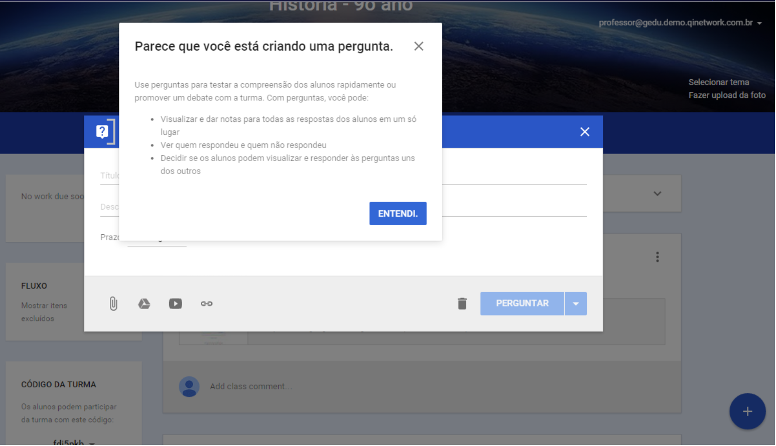 Agora é possível adicionar perguntas na sala e permitir que os alunos tenham conversas respondendo os comentários uns dos outros. Por exemplo, o professor pode postar um vídeo e perguntar aos alunos uma questão sobre seu conteúdo. Ou ainda, postar um artigo e pedir que os alunos escrevam um parágrafo sobre o assunto.