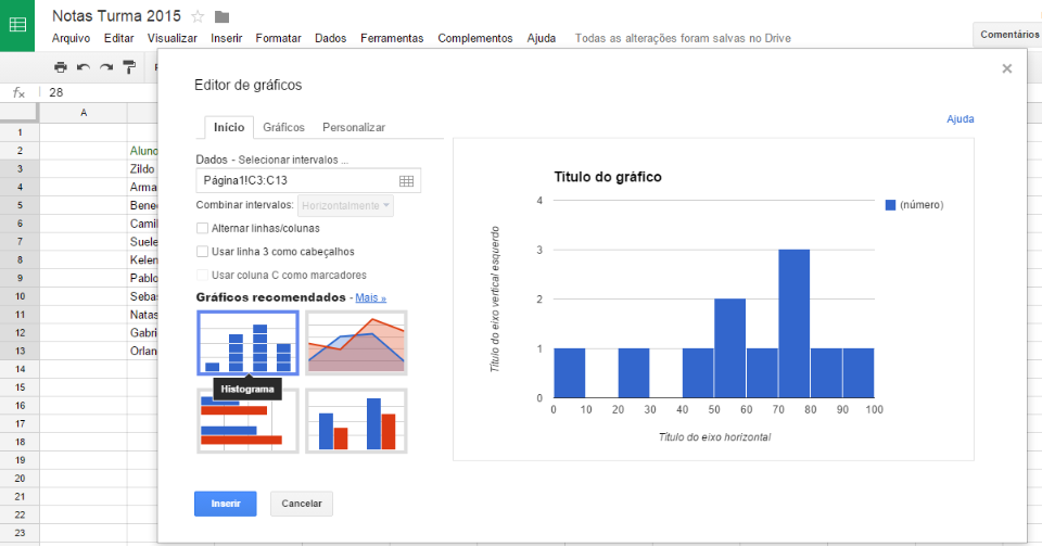 Individualmente é até mais fácil marcar quem é quem e qual é a situação de um ou outro especificamente, mas será que os professores conseguem ter a exata ideia de como seus alunos estão em geral? Será que saberiam responder rapidamente quantos estudantes estão em recuperação e quantos já passaram com folga? E se disséssemos que existe um gráfico que pode ajudar nesse resumão super útil? Pois confira agora mesmo nosso post e conheça o histograma do Google Planilhas:
